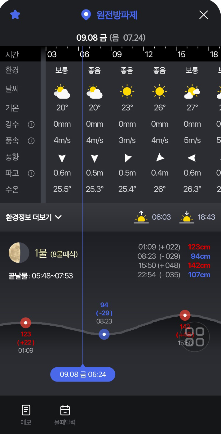 갈치시즌이 돌아오고 좀 이른 감이 있지만 2023년 9월 7일 마산 원전 해상콘도에 다녀왔습니다. 오후 3시 30분쯤 도착했는데도 불구하고 차 댈곳 하나 없이 빽빽하게 들어차 있었습니다. 4시부터 좌대에 입실이 가능하기 때문에 25시 낚시점에서 채비를 구입하고 바로 맞은편 화장실 앞에서 재영좌대 낚싯배를 탔습니다.